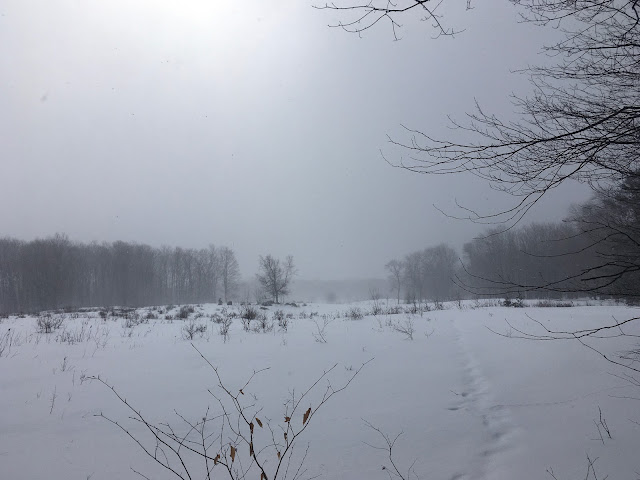 We had a thaw on Sunday and Monday. The temperature rose to 12 degrees and the creeks and springs began to run. Here is the swamp by the split rock and the plinth: